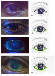 염색약 점안 후 5분 뒤의 결과를 0~+4까지듸 등급으로 나누어 기록하는데, 염색약이 결막낭에 전혀 남아있지 않으면 0, 거의 그대로 남아있으면 +4로 표기한다. 정상인에서는 +1/2~+1 정도의 매우 적은 염색약만 남아있게 되며, 결과를 판독하는 데 있어서 한쪽 눈씩 결과를 등급화하거나 정량화하는 것보다는 양쪽 눈을 서로 비교하면서 검사하는 것이 더욱 의미를 가진다. | 염색약 점안 후 5분 뒤의 결과를 0~+4까지듸 등급으로 나누어 기록하는데, 염색약이 결막낭에 전혀 남아있지 않으면 0, 거의 그대로 남아있으면 +4로 표기한다. 정상인에서는 +1/2~+1 정도의 매우 적은 염색약만 남아있게 되며, 결과를 판독하는 데 있어서 한쪽 눈씩 결과를 등급화하거나 정량화하는 것보다는 양쪽 눈을 서로 비교하면서 검사하는 것이 더욱 의미를 가진다. | ||